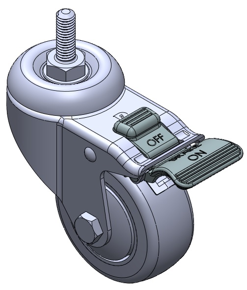 | Bánh xe có thể điều chỉnh, chân đế dập ren – 3/8"-16 răng; bề mặt chống rung, lắp đặt bằng ren; lõi bánh xe bằng polypropylene chịu va đập, bề mặt bánh xe bằng chất đàn hồi nhiệt dẻo (TPR); màu xám, ổ bi bánh xe – ổ bi cầu chính xác. |