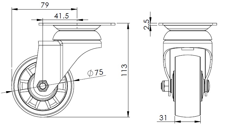 | Bánh xe WMRC (trong suốt) Đường kính bánh xe × Chiều rộng bánh xe 75 x 31mm |