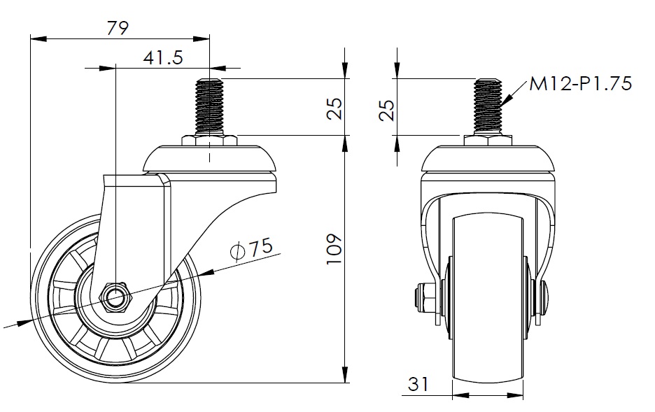 | Bánh xe WMRC đường kính bánh xe × chiều rộng bánh xe 75 x 31mm |
