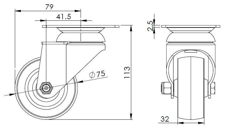 | Bánh xe nylon (màu xanh lá cây) Đường kính bánh xe × chiều rộng bánh xe 75 x 32mm |