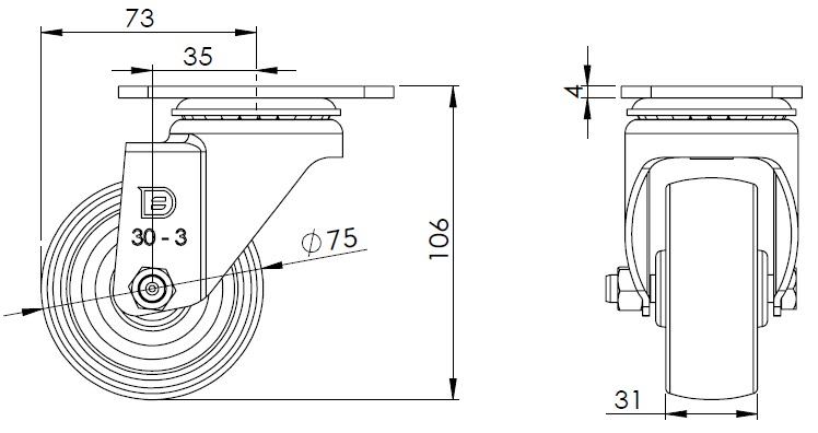 | Bánh xe nylon Đường kính bánh xe × chiều rộng bánh xe 75 x 31mm |