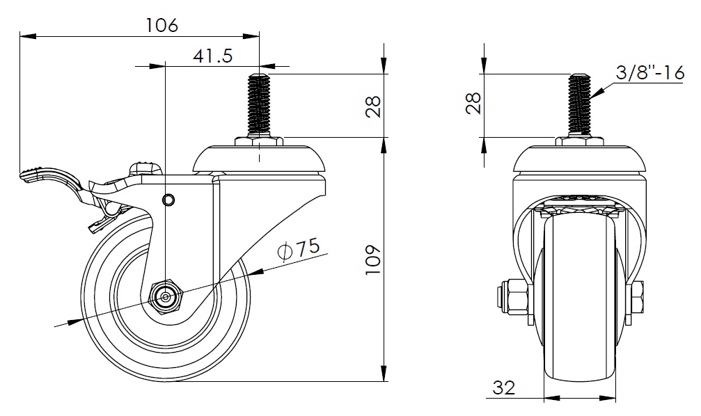 | Bánh xe PPR (màu xám đậm ngọc trai) Đường kính bánh xe × chiều rộng bánh xe 75 x 31mm |