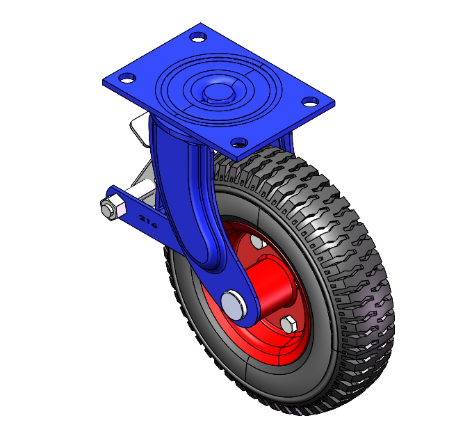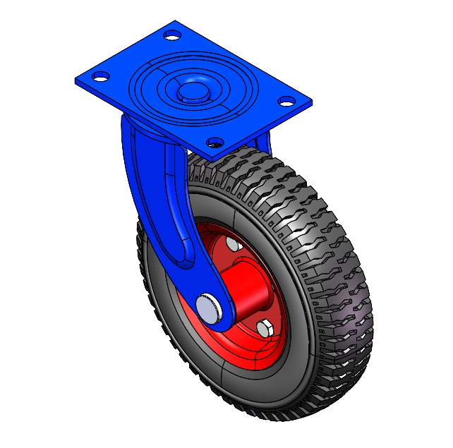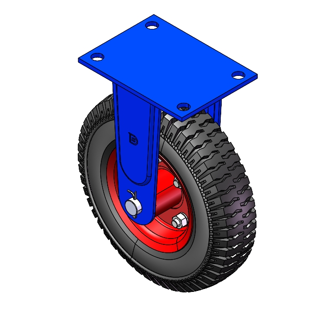 Rigid Caster with Welded Caster Fork. Blue-painted finish, Top Plate (5T) Mounting Type system. Cast Iron Wheel Center with High-Quality Resilient Rubber Wheel Tread for superior pressure and Abrasion Resistance. Black, Bearing—Ball Bearing. |