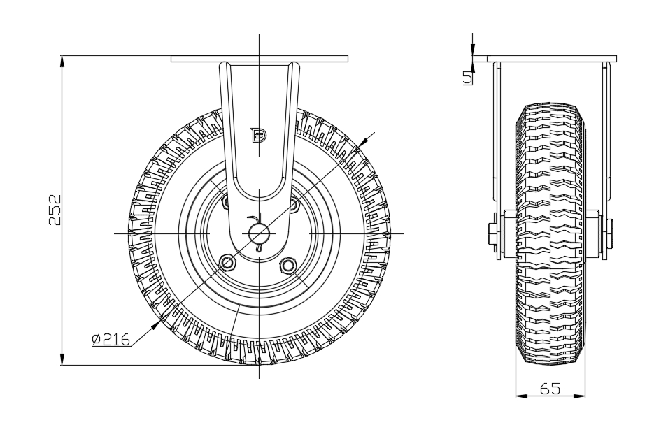 Pneumatic (Black) Wheel Diameter × Wheel Width 216 x 65mm |