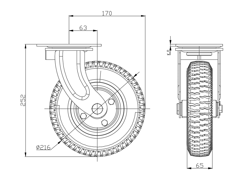 Pneumatic (Black) Wheel Diameter × Wheel Width 216 x 65mm |