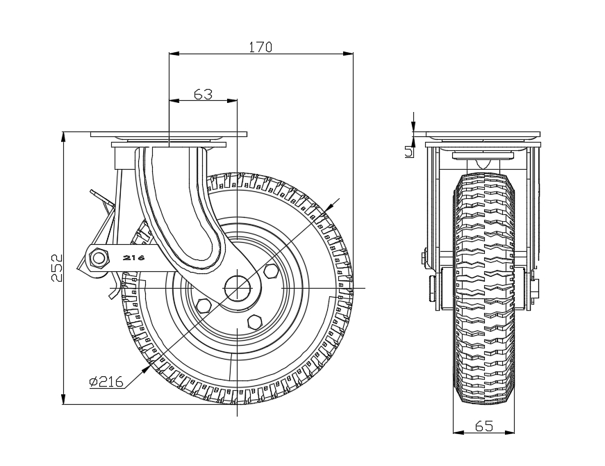 Pneumatic (Black) Wheel Diameter × Wheel Width 216 x 65mm |