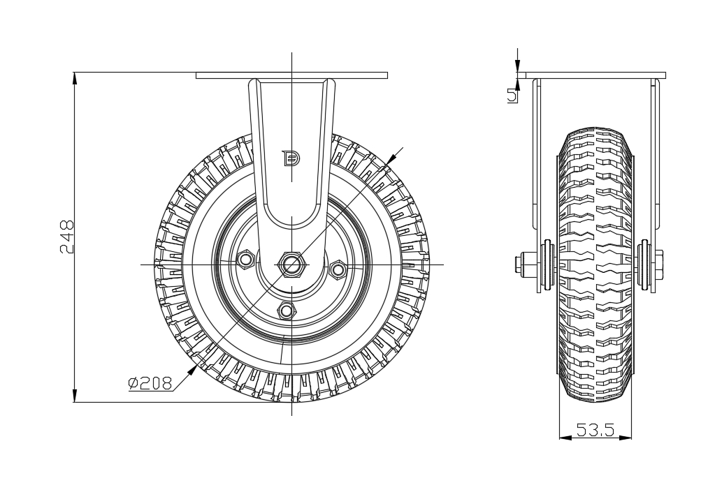Flat Free Tire Wheel Diameter × Wheel Width 208 x53.5 mm |