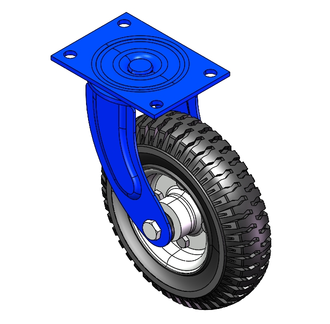 Rigid Caster, Welded Caster Fork Blue-painted finish, Top Plate (5T) Mounting Type Q235 Wheel Hub, High-Quality Resilient Rubber tread Black, Bearing—Chrome steel Ball bearing. |