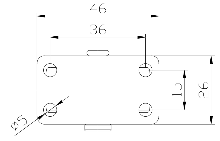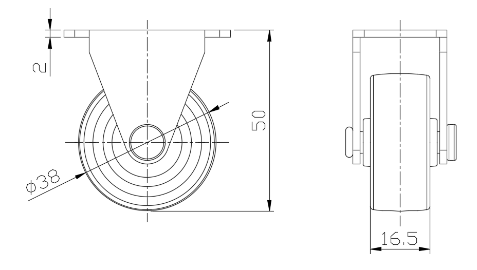 | 固定式腳輪,一體成型沖壓腳架,孔距36 x 15