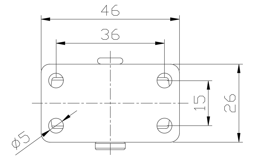 | 固定式脚轮,一体成型沖压脚架,孔距36 x 15