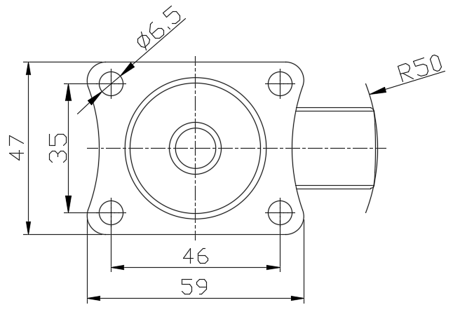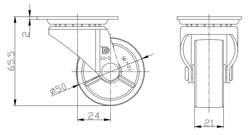 | Bánh xe di động, đế đinh tán và dập—khoảng cách lỗ 46 x 35mm