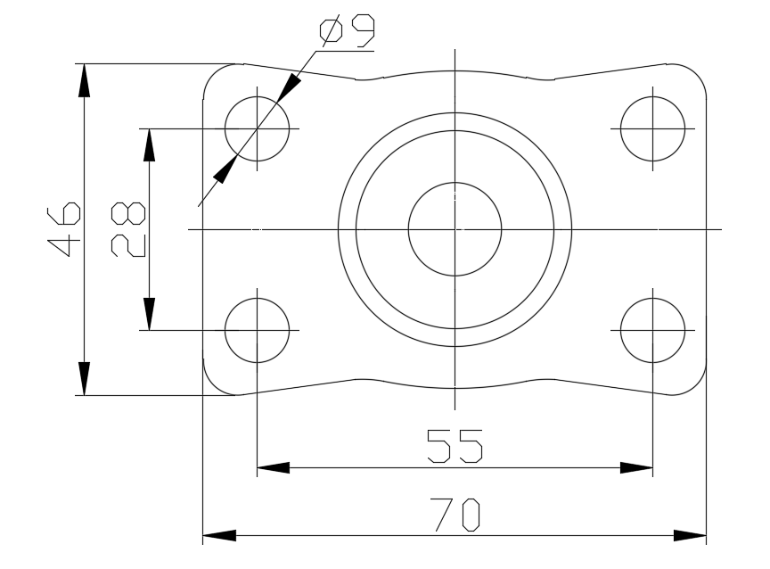 | Bánh xe cố định, khung dập liền khối, khoảng cách lỗ 55 x 28