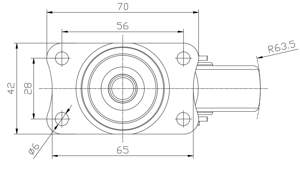 | 活动式脚轮,底板铆合冲压脚架—孔距56x28