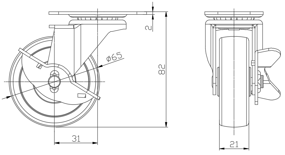 | 橡胶轮 轮径 × 轮宽 65×21 mm |
