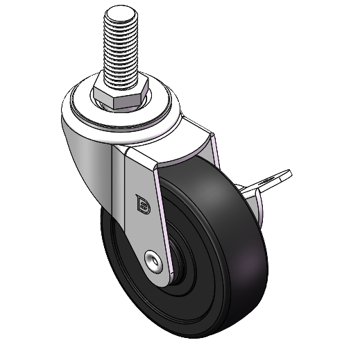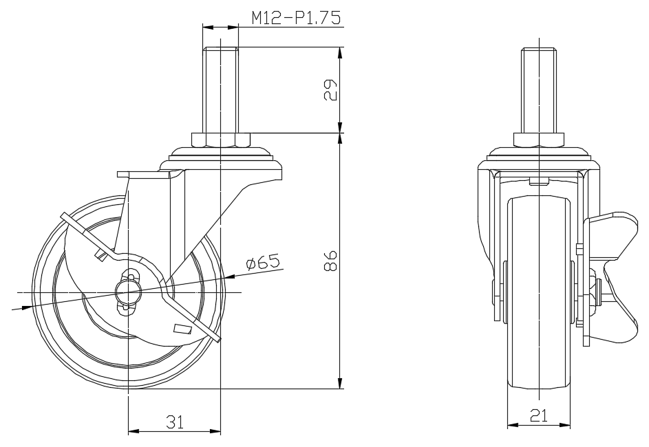 | 配有侧(轮)煞式,锁定系统的脚轮。牙心铆合沖压脚架—M12-P1.75