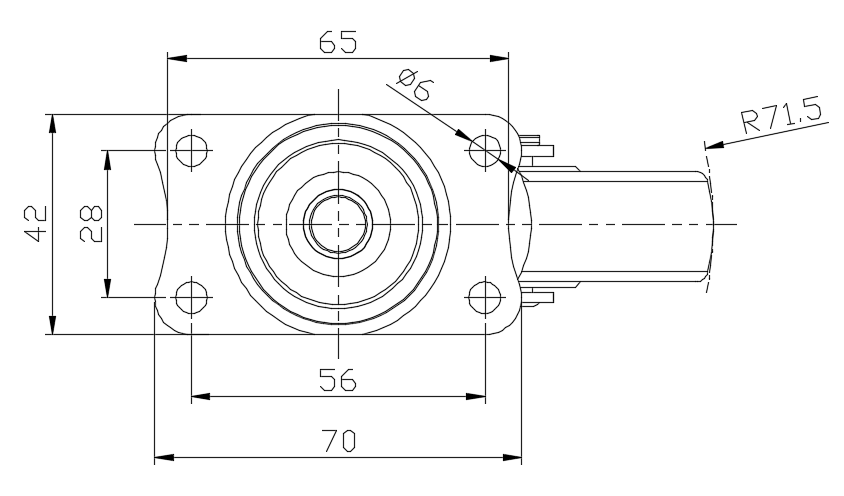 | 活动式脚轮,底板铆合冲压脚架—孔距56x28