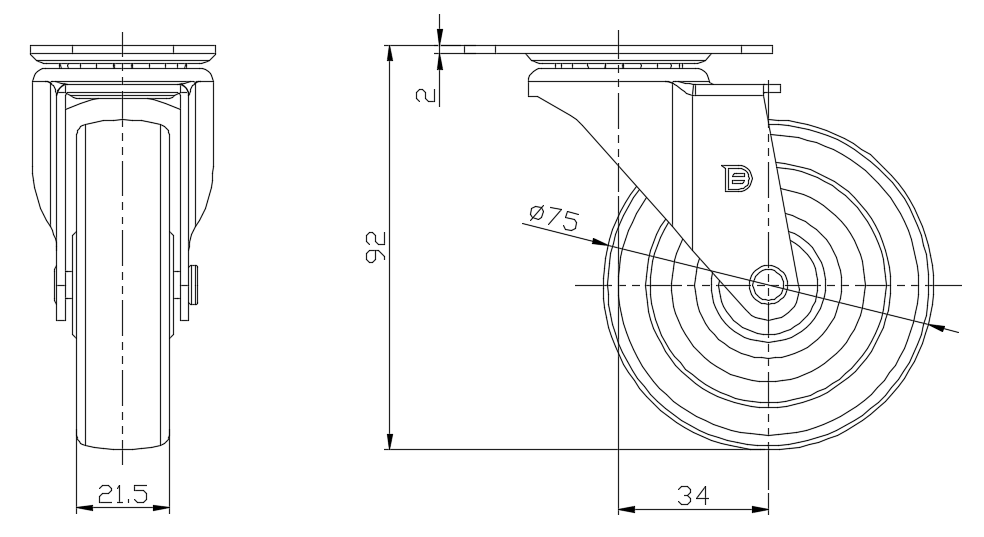 | 橡胶轮(黑)轮径 × 轮宽 75×21.5 mm |