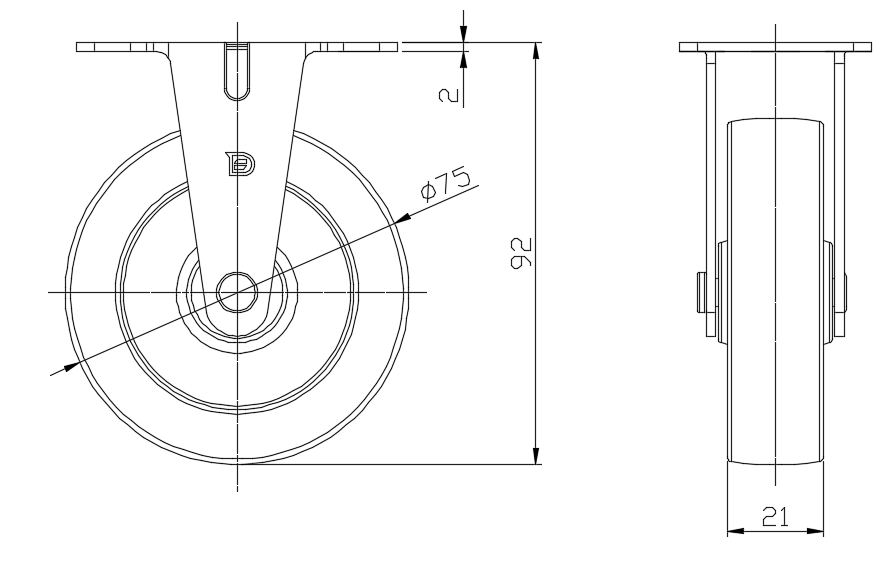 | PPR 轮(黑黑平)- 轮径 × 轮宽 75×21mm |