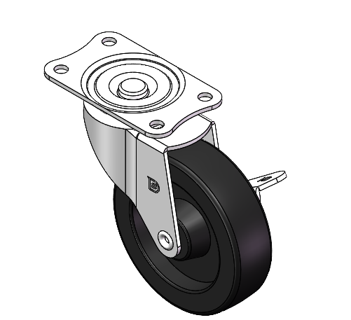 表面镀锌,底板式(2T)安装装置 耐冲击聚丙烯轮芯,热塑性弹性体(TPR)轮面 黑色,轮子—中管式。 |