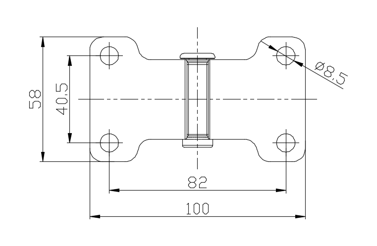 | 固定式脚轮,一体成型冲压脚架—孔距82x40.5