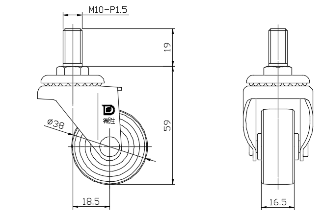 Portable Casters, Threaded Stem Stamping Fork—M10-P1.5