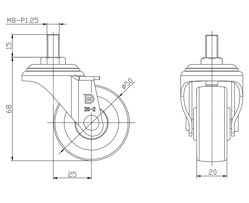 | 活動式腳輪,牙心鉚合沖壓腳架—M8-P1.25