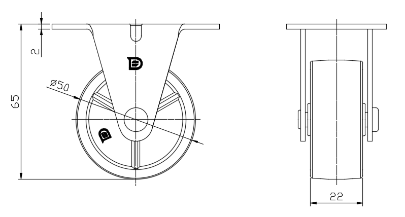 | 固定式腳輪,一體成型沖壓腳架—孔距56x28