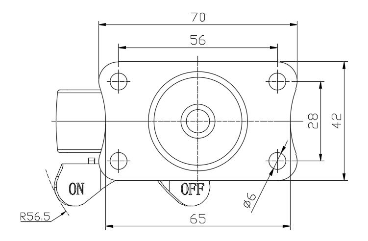 | 配有側(輪)煞式,鎖定係統的腳輪。底板鉚合沖壓腳架—孔距56x28