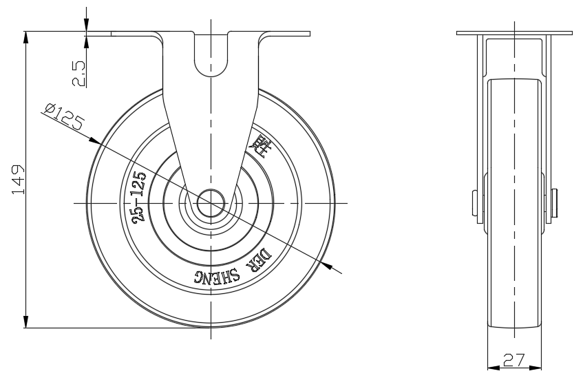 | 橡膠輪 輪徑 × 輪寬 125×27mm |