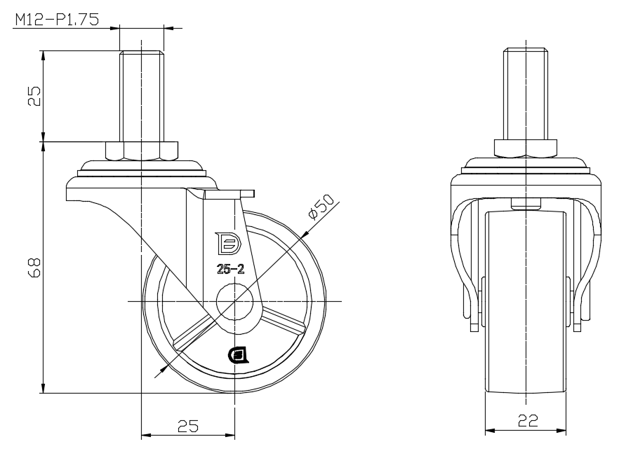 | 活動式腳輪,牙心鉚合沖壓腳架—M12-P1.75