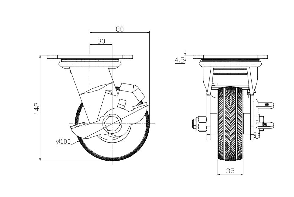 SX Rubber Wheel Diameter × Wheel Width 100 x 35mm |