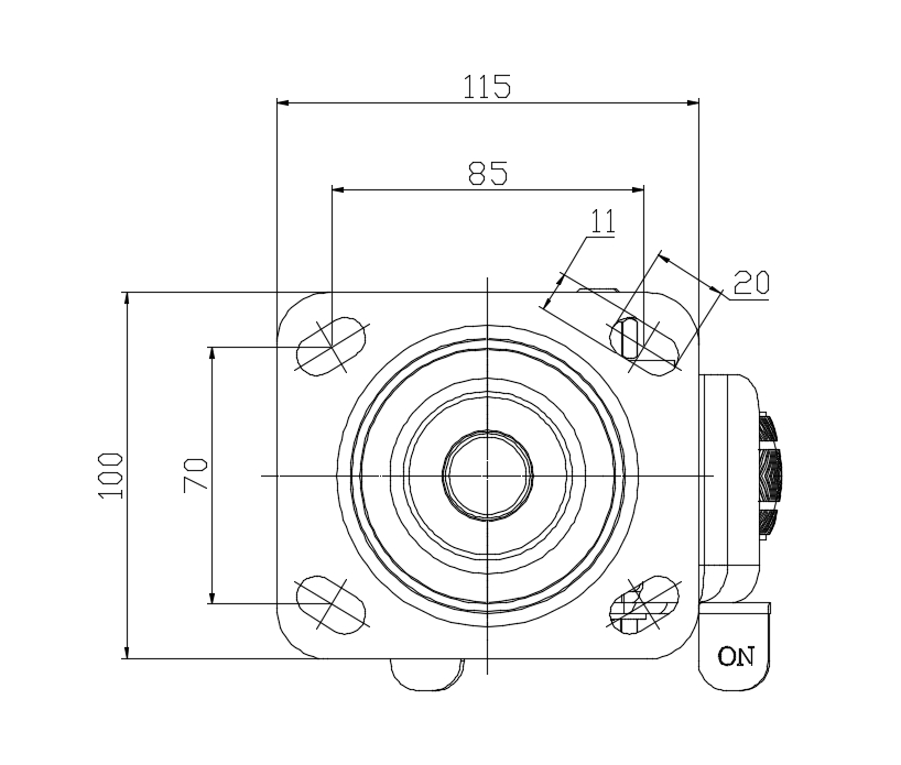 Side brake Caster with Locking system. Top Plate Riveted and Stamping - D-shaped. Hole Zine-Plated, Top Plate (4.5T) Mounting Type system Cast Iron Wheel Center with High-Quality Resilient Rubber tread Iron black, Bearing - Ball Bearing. |