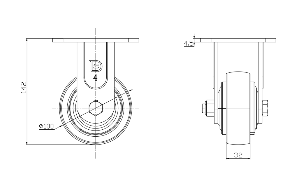 Wheel tread: Thermoplastic (PA6) Wheel Center: Thermoplastic (PA6) Drawings are for reference only and may differ from the product |