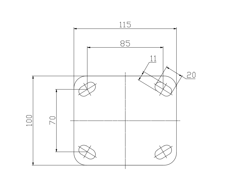 Rigid Caster, Welded Caster Fork 85 x 70mm (3-3/8" x 2-3/4") Bolt Hole Spacing