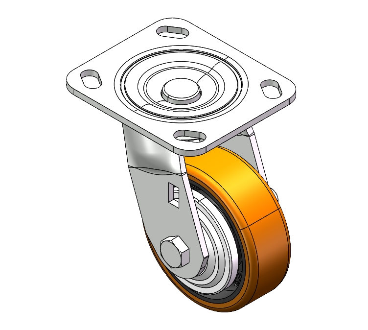Swivel Caster with Riveted Fork and Stamping Fork - 85 x 70mm (3-3/8" x 2-3/4") Bolt Hole Spacing Zine-Plated, Fork-mounted (4.5T) Mounting Type system Cast Iron Wheel Center, High Quality Polyurethane tread Iron brown, Bearing - Ball Bearing. |
