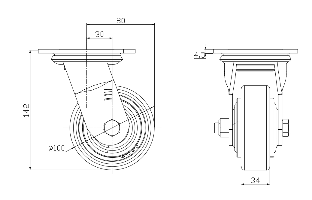 Wheel tread: Made of high-quality polyurethane Wheel Center: cast iron core Drawings are for reference only and may differ from the product |