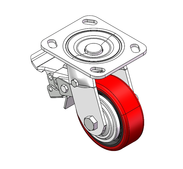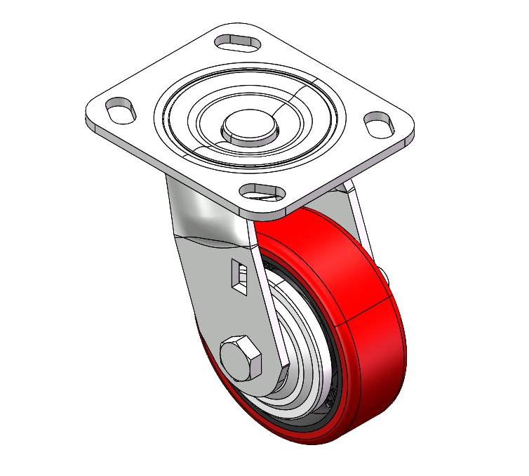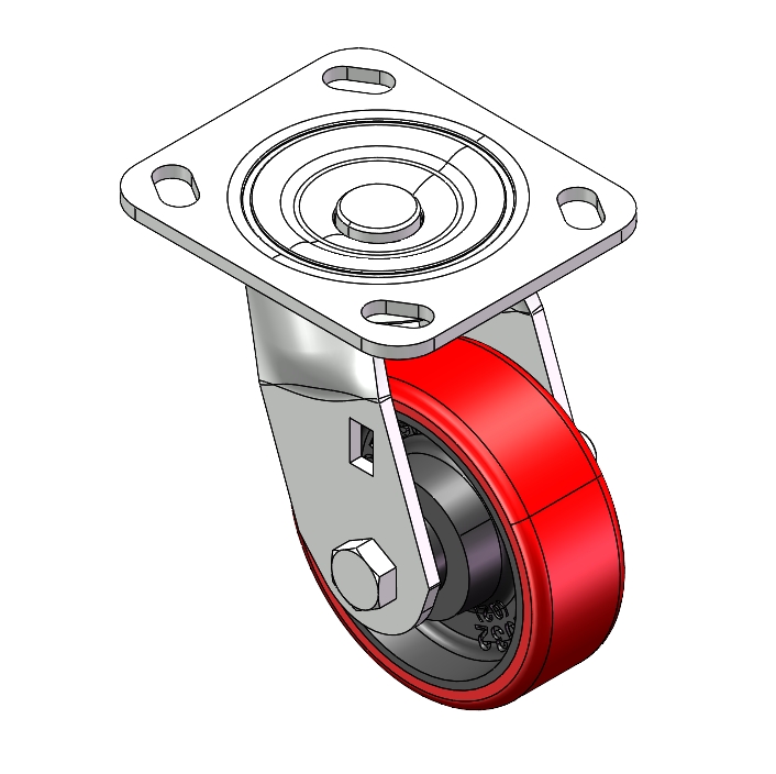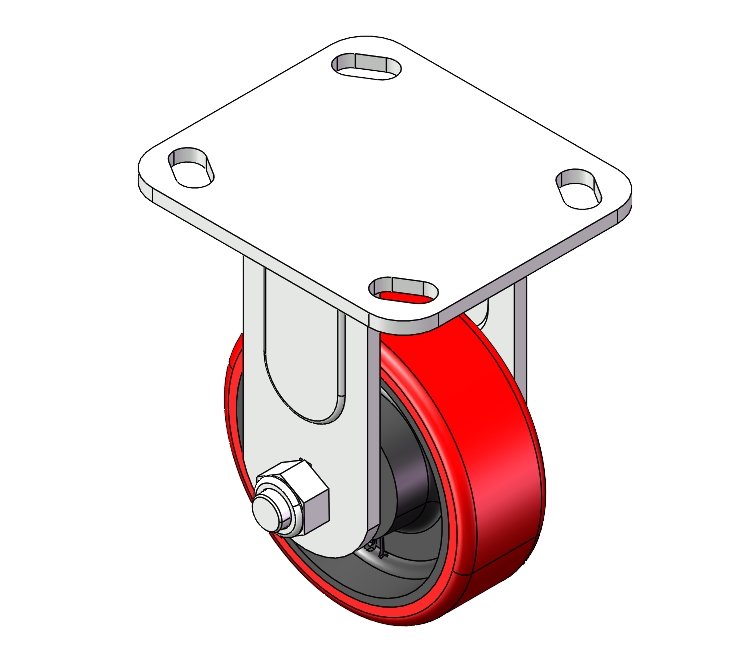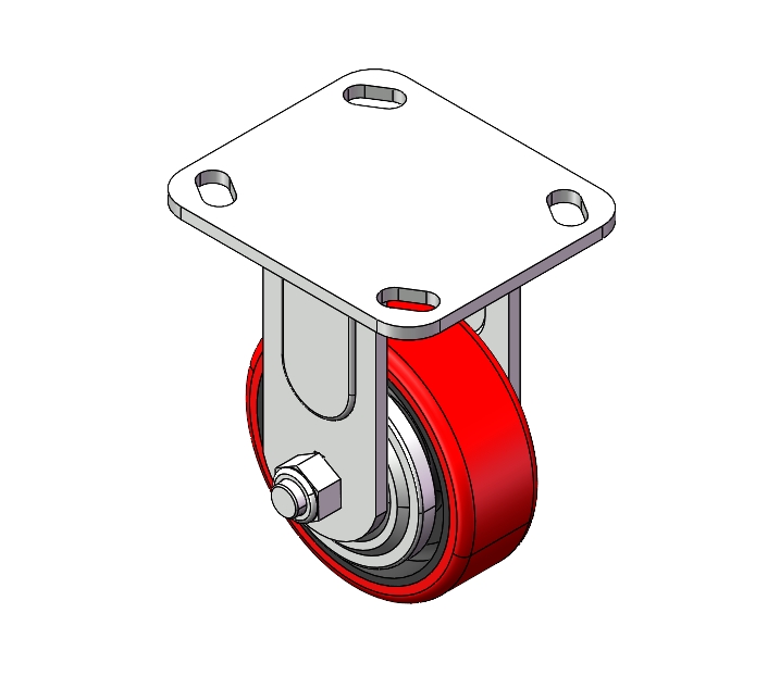 Rigid Caster, Welded Caster Fork with 85 x 70mm (3-3/8" x 2-3/4") Bolt Hole Spacing cutout Zine-Plated, Top Plate (4.5T) Mounting Type system Cast Iron Wheel Center with High Quality Polyurethane tread Red Cast Iron finish, Ball Bearing. |