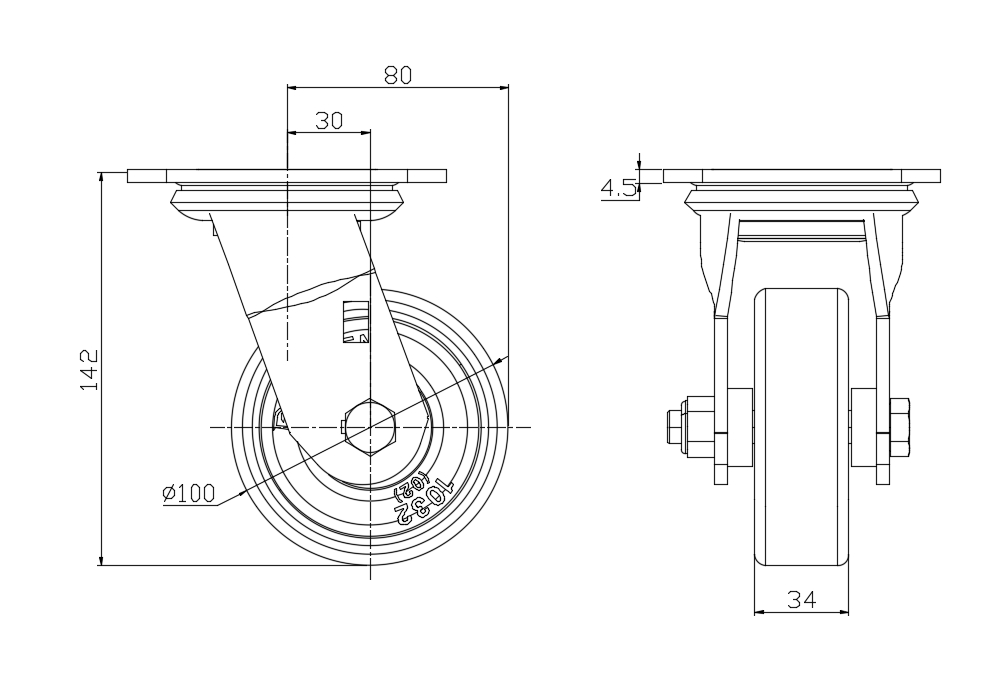Wheel tread: Made of high-quality polyurethane Wheel Center: cast iron core Drawings are for reference only and may differ from the product |