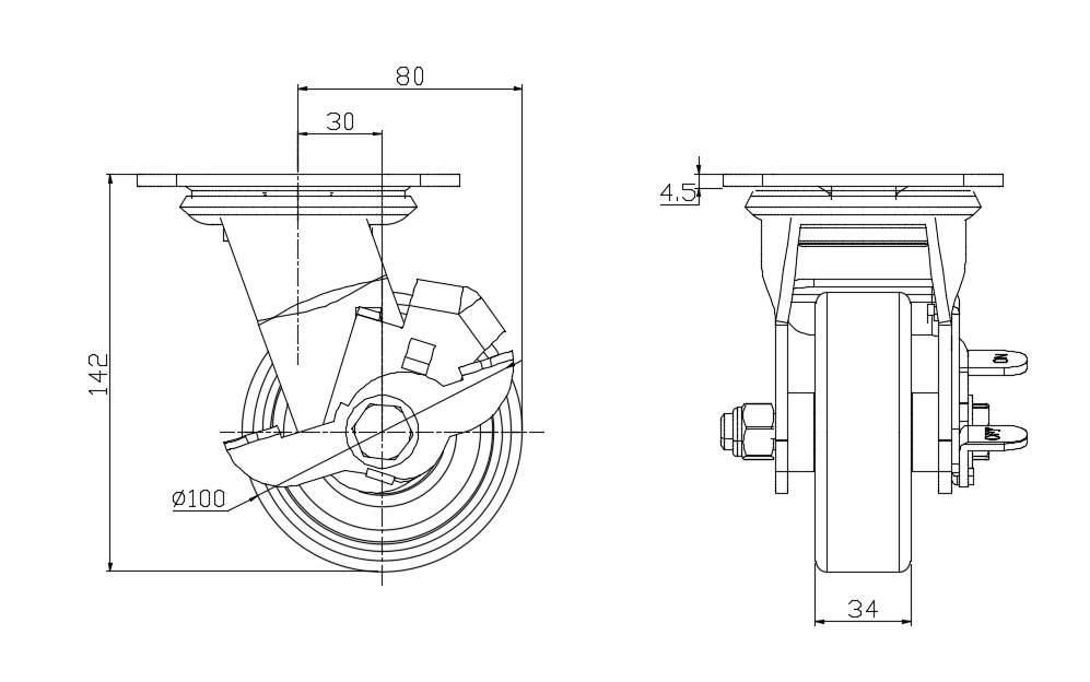 Wheel tread: Made of high-quality polyurethane Wheel Center: cast iron core Drawings are for reference only and may differ from the product |