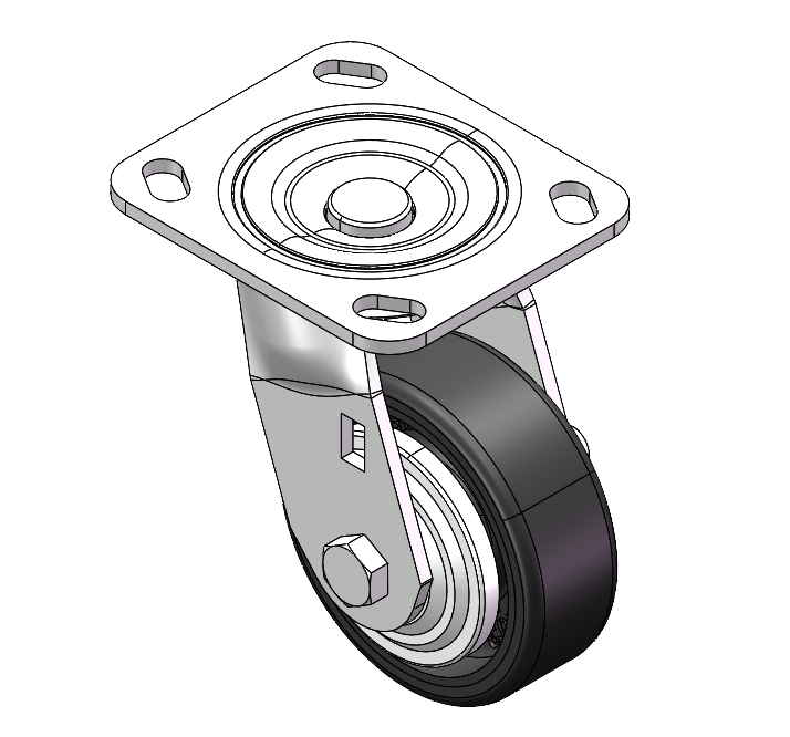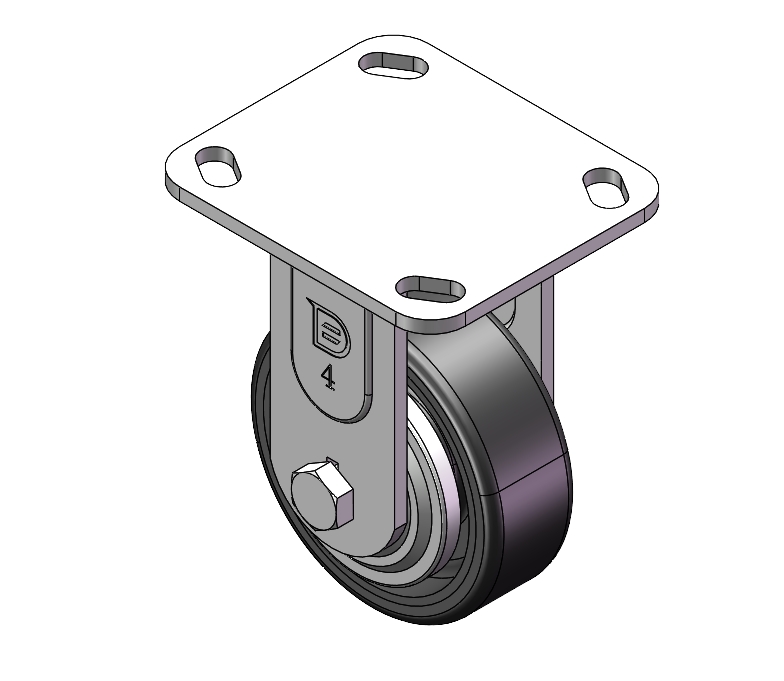 Rigid Caster, Welded Caster Fork with 85 x 70mm (3-3/8" x 2-3/4") Bolt Hole Spacing Zine-Plated, Top Plate (4.5T) Mounting Type system Cast Iron Wheel Center with High Quality Polyurethane tread Iron black, Bearing—Ball Bearing |