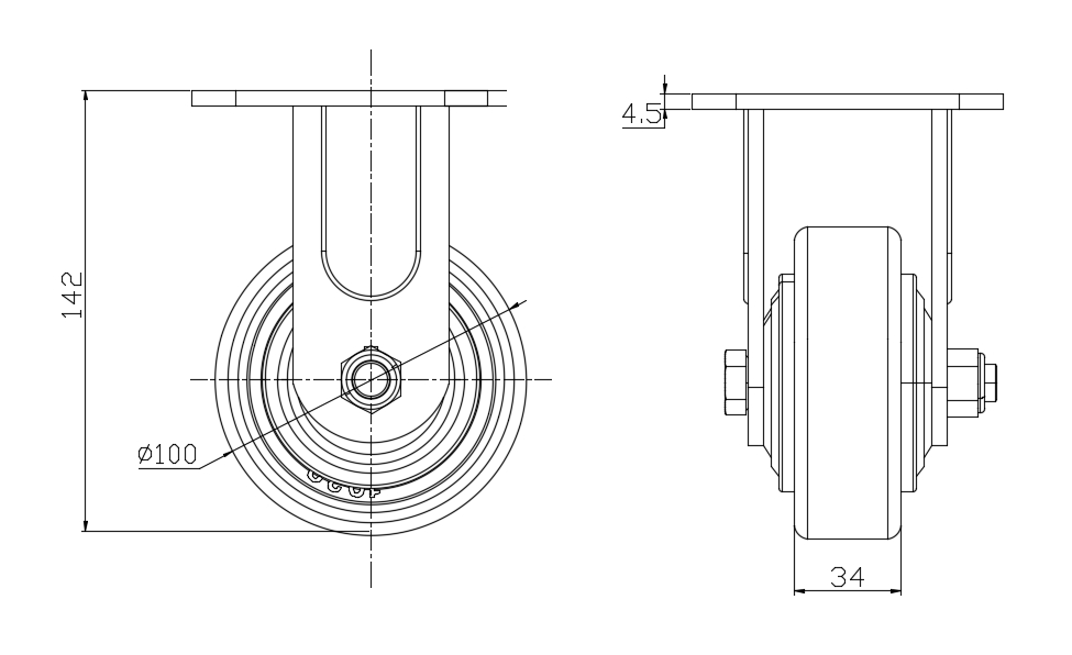 PU (Black flat) Wheel Diameter x Wheel Width 100 × 34mm |