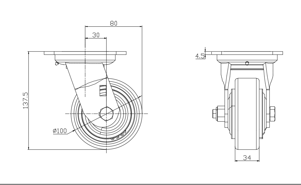 Wheel tread: Made of high-quality polyurethane Wheel Center: cast iron core Drawings are for reference only and may differ from the product |