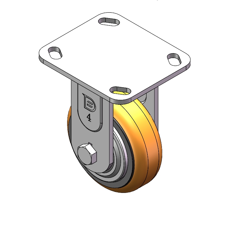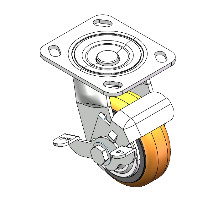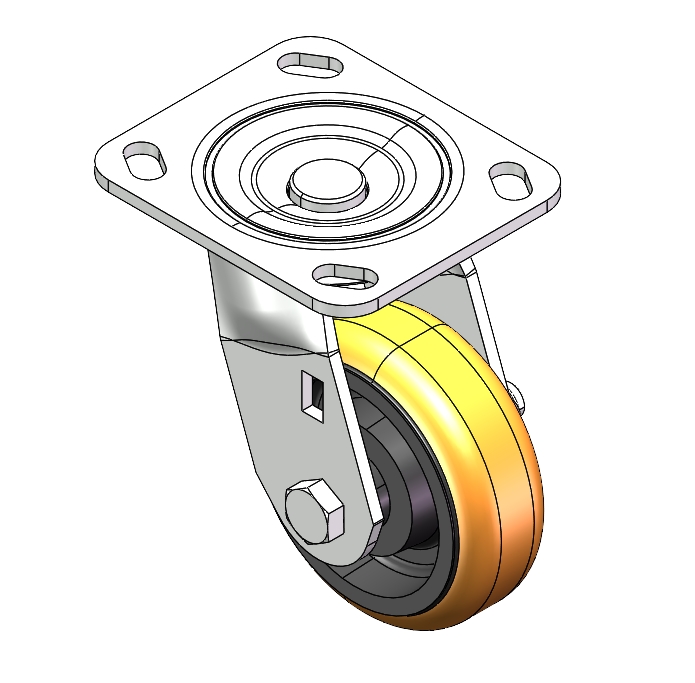 Swivel Caster, Top Plate Riveted and Stamping with 85 x 70mm (3-3/8" x 2-3/4") Bolt Hole Spacing Mounting Type. Zine-Plated, Top Plate (4.5T) Mounting Type mechanism. Cast Iron Wheel Center, High-Quality Resilient Rubber tread. Orange color, Bearing—Ball Bearing. |