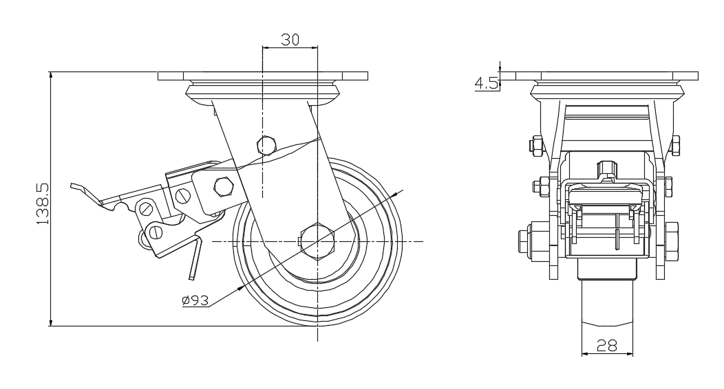 Cast Iron Wheel Diameter × Wheel Width 93 x 28mm |