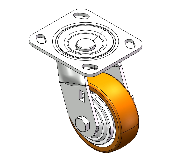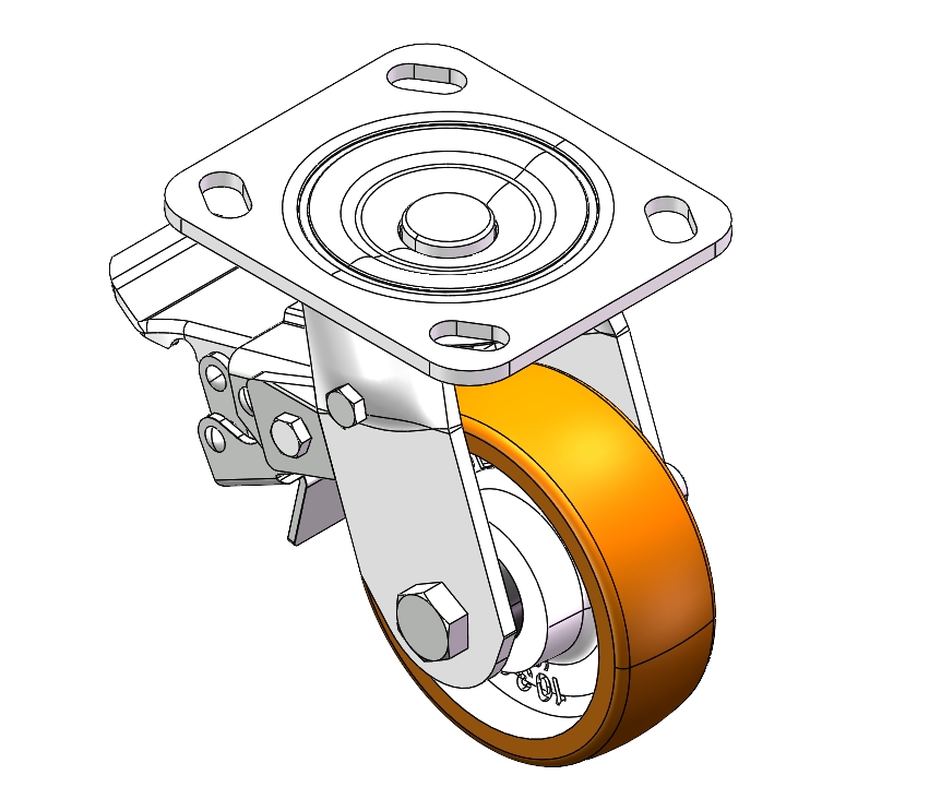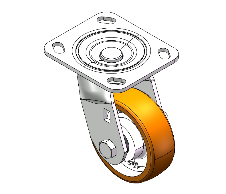 Center Brake Locking system. Top Plate with Riveted, Stamping Fork and 85 x 70mm (3-3/8" x 2-3/4") Bolt Hole Spacing. Zine-Plated, Top Plate (4.5T) Mounting Type system. Cast Iron Wheel Center with High Quality Polyurethane tread. Iron brown, Bearing with Ball Bearing. |