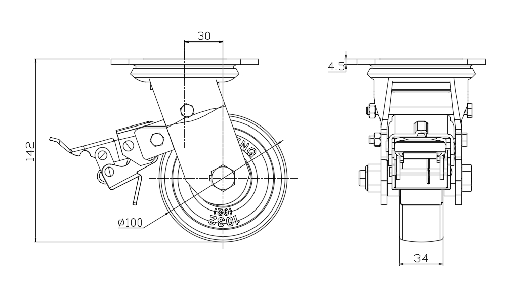 Swivel Caster With Rear Brake