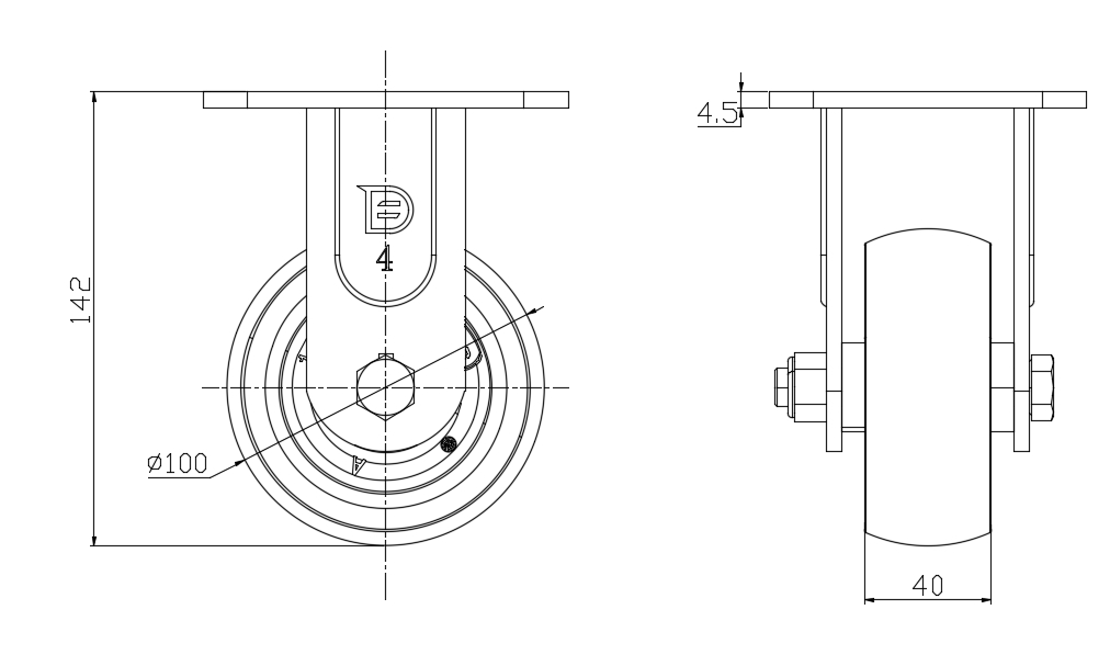 Wheel tread: Made of high-quality polyurethane Wheel Center: aluminum core Drawings are for reference only and may differ from the product |
