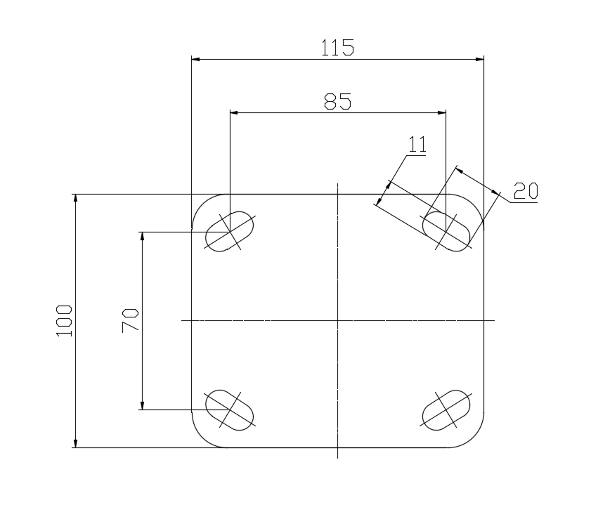 Rigid Caster, Welded Caster Fork with 85 x 70mm (3-3/8" x 2-3/4") Bolt Hole Spacing cutout
