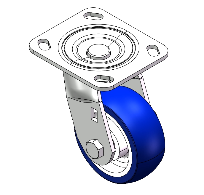 Zine-Plated, Top Plate (4.5T) Mounting Type system Aluminum core, High Quality Polyurethane Wheel Tread Blue color, Bearing—Ball Bearings. |