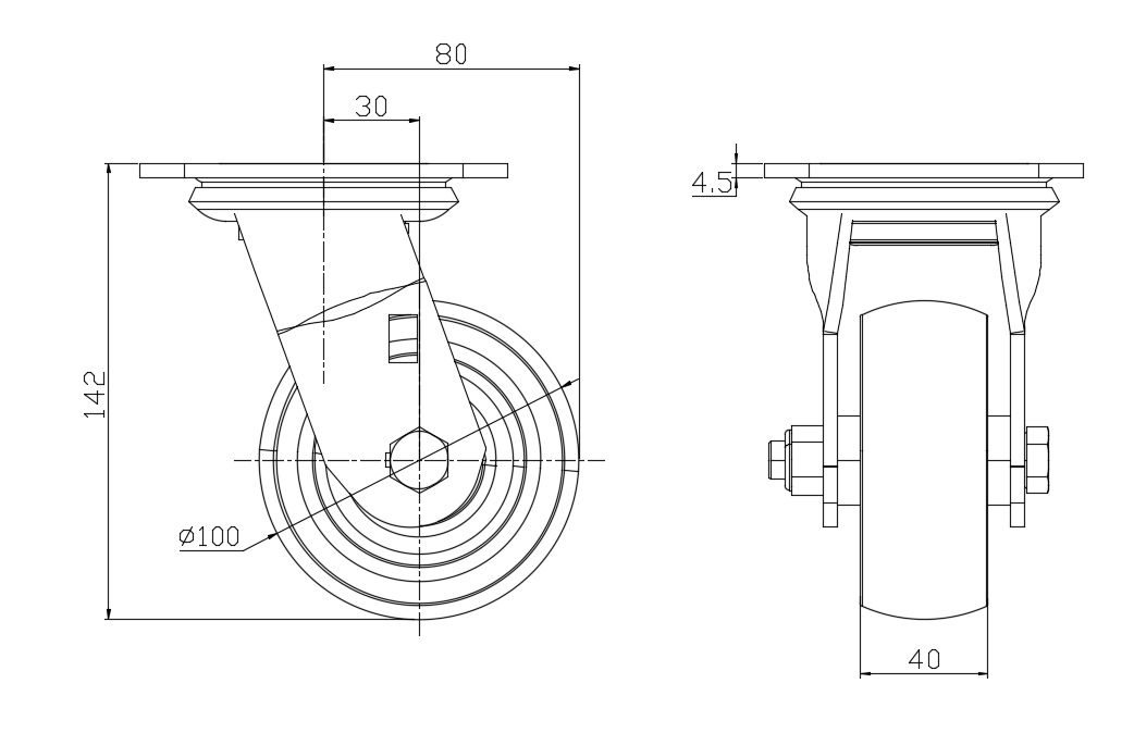 AQPU (grey round) Wheel Diameter × Wheel Width 100 x 40mm |